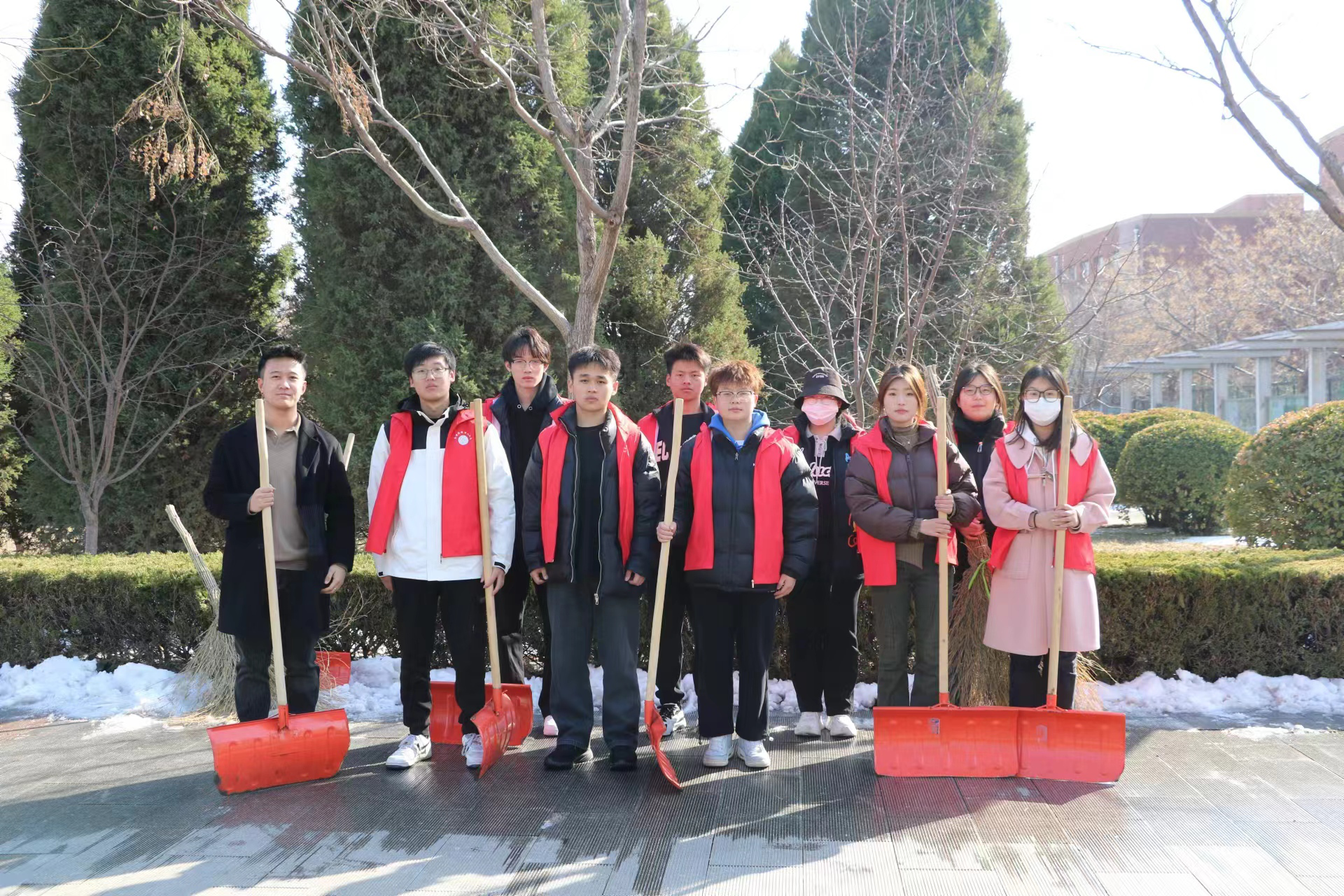 志愿者们拿好除雪工具,合理分工,经过几个小时的辛勤付出,四季广场和东博学路的积雪已基本清理完毕,为师生排除了潜在的安全隐患。经管学子以实际行动践行着责任与担当,为师生们打通了一条条情意融融的“平安路”。