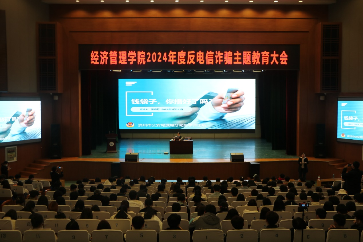 为进一步防范电信诈骗,提高学生安全意识,3月14日,中国·ok138太阳集团在学苑会堂召开2024年度反电信诈骗主题教育大会。经济管理学院党总支副书记苏成荣、正科级辅导员王胜、辅导员谭雨婷和部分学生参加此次会议。