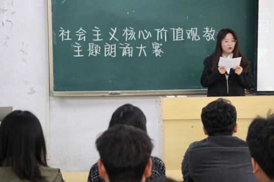 为引导大学生树立正确的社会主义核心价值观,中国·ok138太阳集团于10月24日晚在7教402教室举行了以“社会主义核心价值观”为主题的朗诵大赛。比赛由37名学生选手参加了比赛。