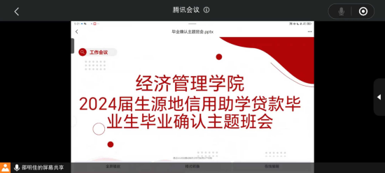 毕业生贷款确认工作是确保借款学生毕业后联系畅通的重要保障,也是有效开展毕业生贷后管理工作的前提和保障。通过生源地助学贷款毕业生确认工作主题班会,既有利于促进2024届毕业生明确助学贷款毕业确认工作的具体要求和流程,又有利于学院针对性地统筹和安排学院助学工作,强化毕业生的法制观念和契约精神,也为后期学院助学部开展贷款毕业生信息确认工作打好良好的基础。