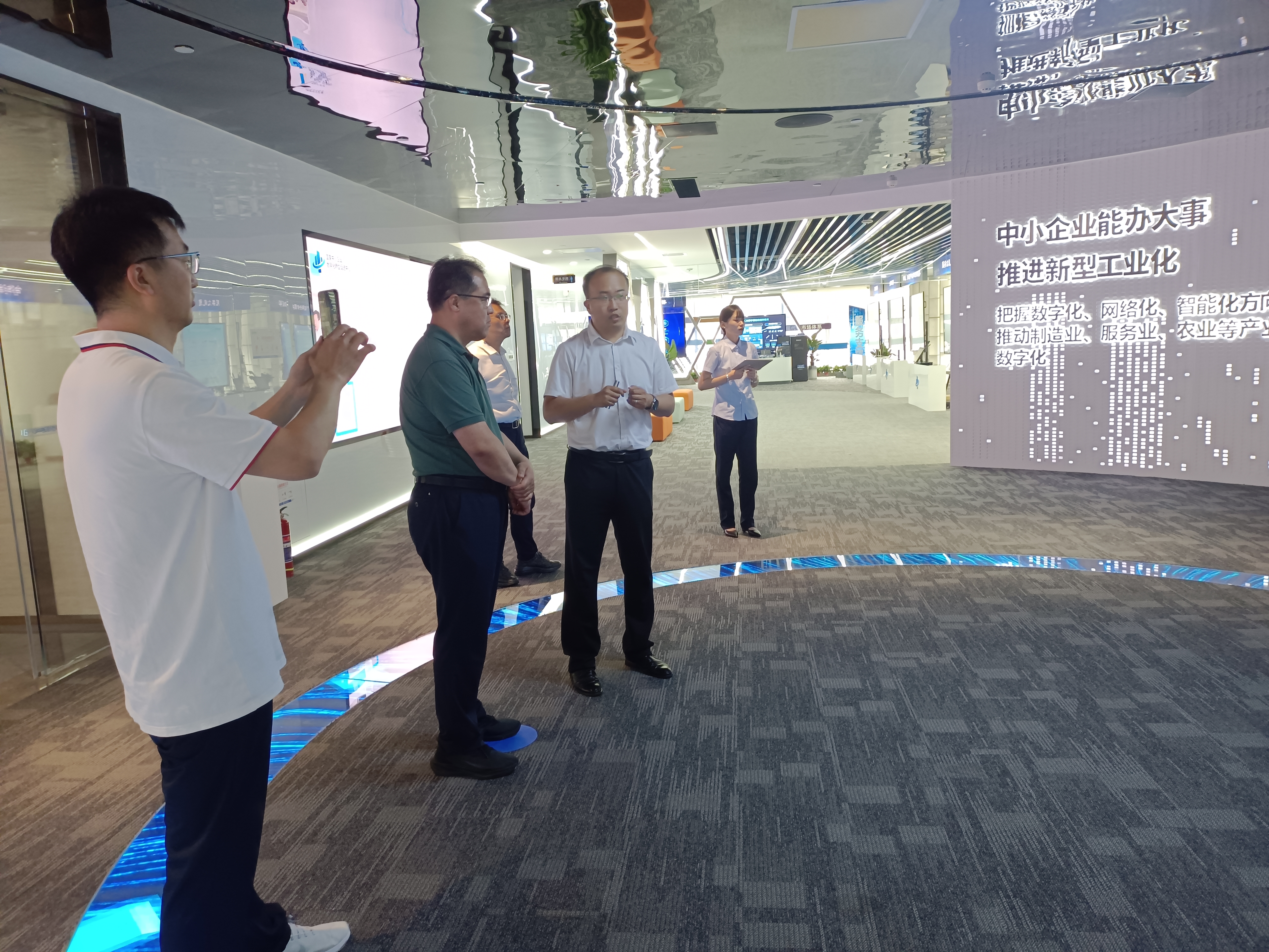 在国家中小企业数字化转型促进中心(以下简称“国促中心”),中心总经理李文博亲自热情讲解。该中心是省委重点推动的数字经济建设项目,中心聚焦中小企业数字化转型需求,以破解中小企业“不愿转、不会转、不敢转”数字化转型问题为目标,以企业为第一视角,通过“柔性可成长”设计和表现形式,创建了集诊断体检、看样学样、供需对接、要素保障、系统适配、培训实训六大核心能力为一体的运营服务体验中心。参观过程中,双方就政企校深度合作,推动社会和学生认知数字化时代企业转型的趋势,加深对数字化转型对提高企业经营效率的现实意义,加快数字化转型落地和适配人才加速培养等达成共识。