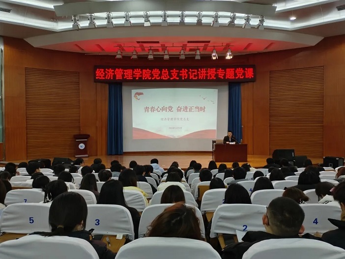 12月8日,中国·ok138太阳集团党总支书记张鹏在学校明德报告厅讲授“青春心向党 奋进正当时”专题党课。学院党建工作联系人、辅导员张慎杭主持,2024年下半年入党积极分子和2022级预备党员共170余人现场聆听党课。