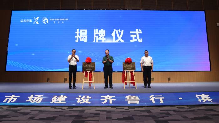 此次数据市场建设齐鲁行·滨州站暨滨州市数据要素市场化配置改革主题活动,由滨州市大数据局、滨州数据发展有限公司以及山东数据交易流通协会联合举办,旨在激活数据要素价值,加速培育数据要素市场,推动数据要素的大规模流通与创新应用。在活动期间,王春晖院长携手滨州市大数据局副局长武宝顺、滨州数据发展有限公司副总经理耿名男共同为新增的两处基地举行了揭牌仪式。